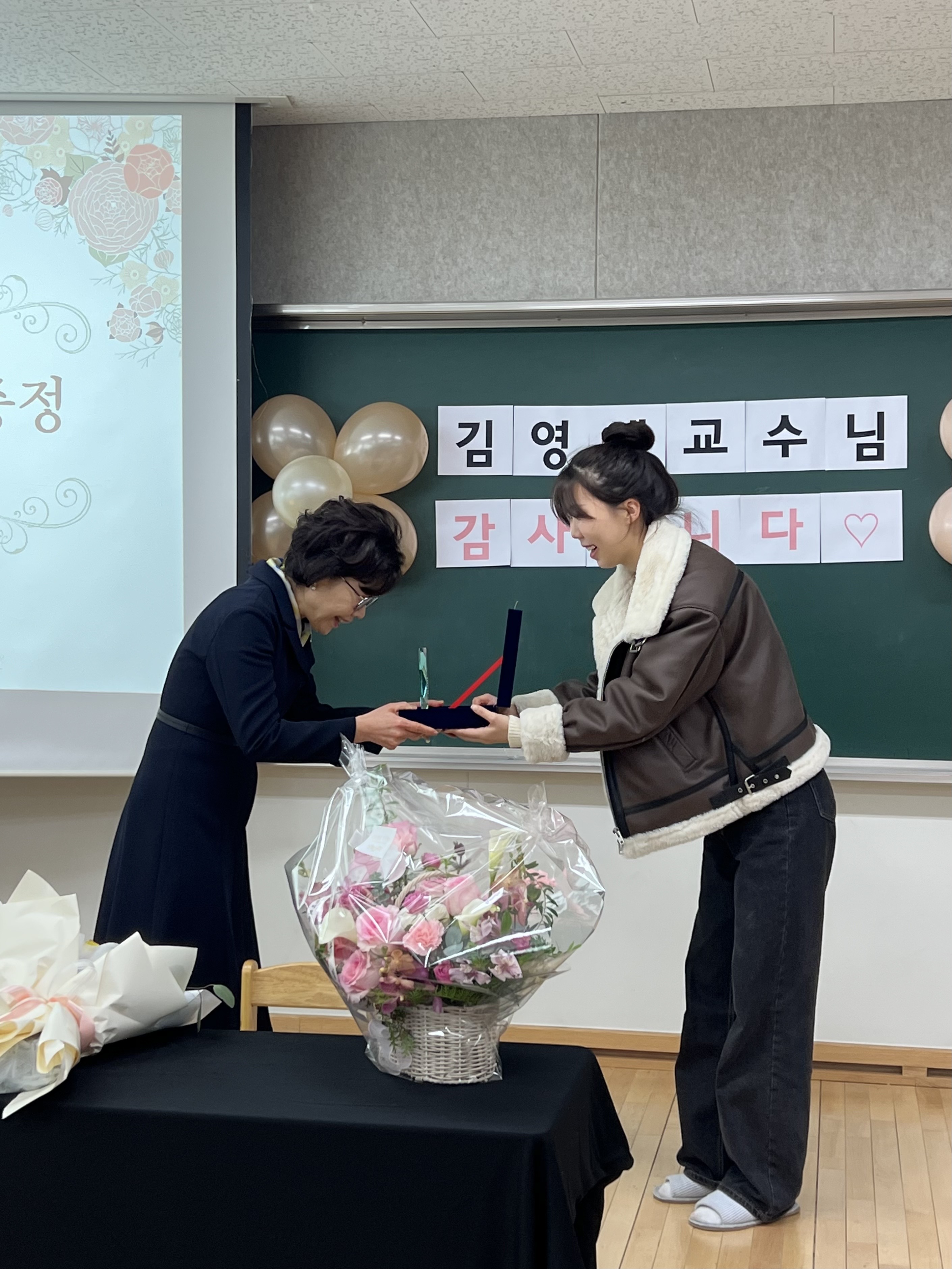 - 내용 : 약 43년간 서영대학교를 빛내주신 김영애교수님 퇴임을 맞이하여 유아교육과 전임교수님, 학생회를 비롯한 서영대학교 유아교육과 재학생들이 퇴임식을 준비하였습니다. 김영애교수님의 노고에 감사드립니다.