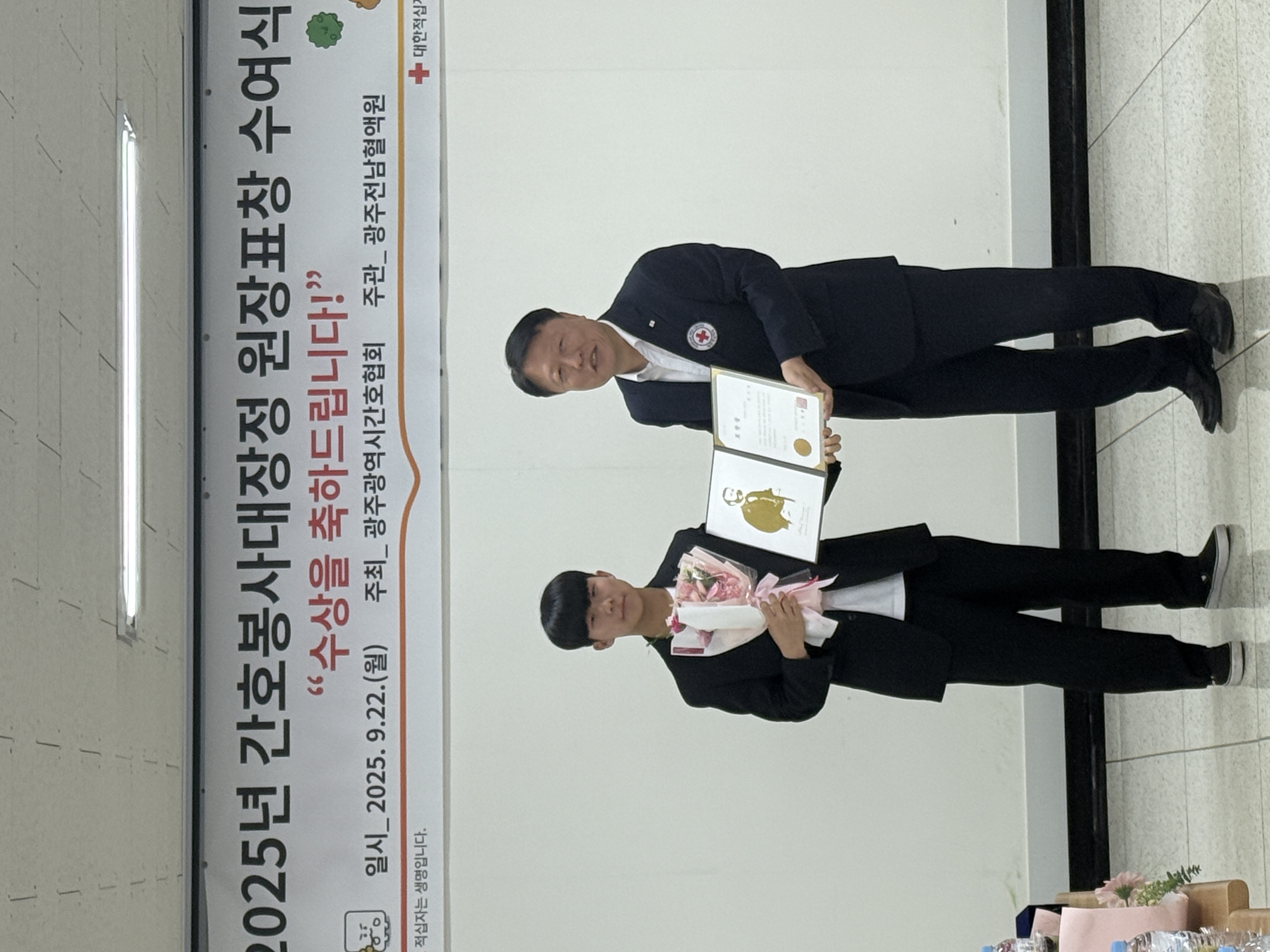 9월 22일 간호봉사대장정 원장표창 수여식에서 3학년 김기정 학생이 표창 받았습니다.