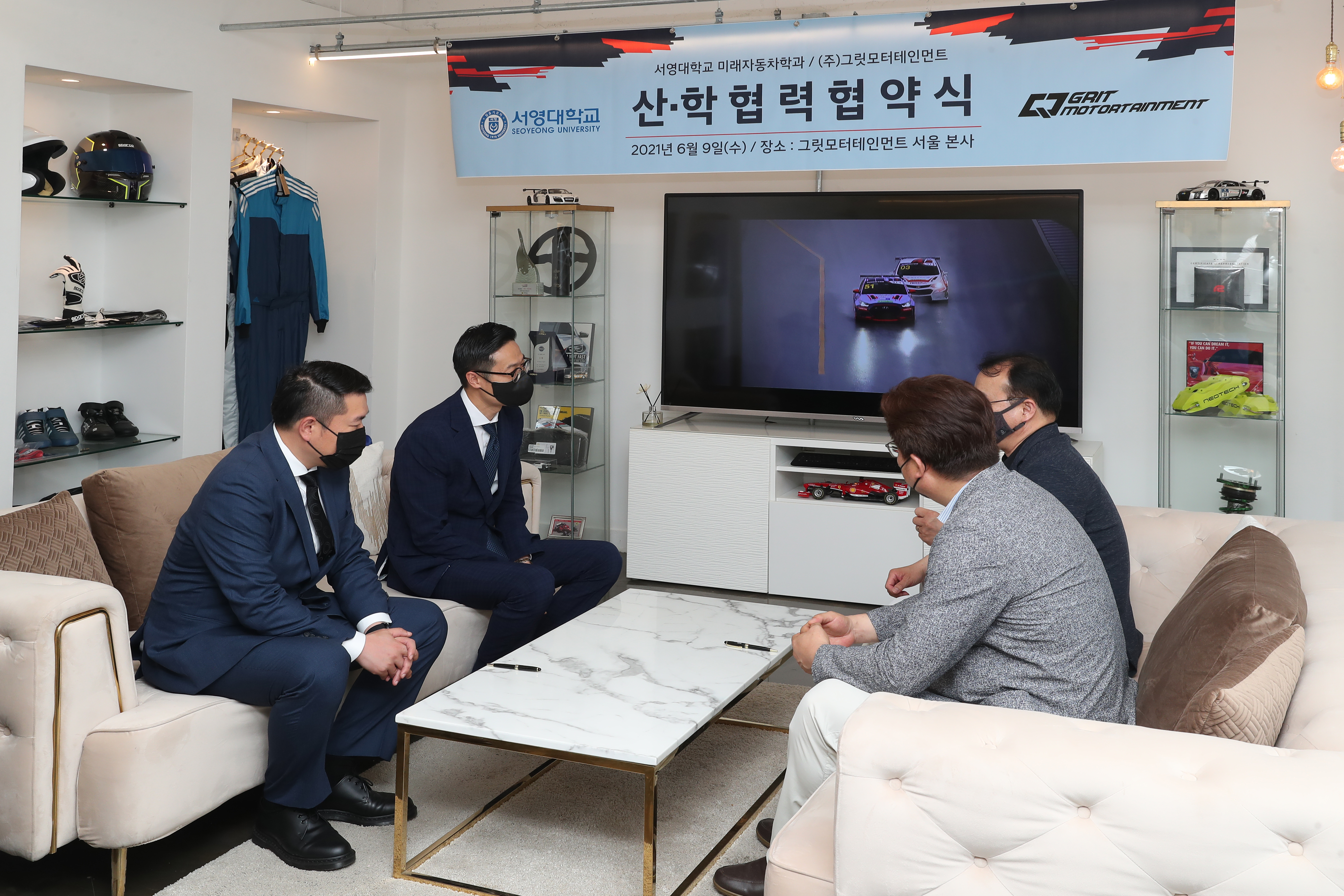 2021년 06월09일 서영대학교 미래자동차과와 그릿모터스포츠팀과 MOU를 체결하였습니다. 협약내용으로는 재학생 모터스포츠 참여 기회 제공, CEO(혹은 팀원)특강을 통한 산학인력교류, 현장실습 및 취업 기회지원, 모터스포츠 및 자동차튜닝 공동 연구 및 상호 간 교류 입니다. 이렇게 다양한 산업체 및 기업과 MOU를 통하여 재학생 및 졸업생분들에게 다양한 역량강화 기회제공, 많은 체험기회 등을 통하여 학훈인 재밋게 놀고, 재밋게 공부하자를 매일매일 실현하는 학과가 되겠습니다! MOU를 통해 재학생들에게 더 좋은 길을 열어주신 그릿모터테인먼트에게 감사드립니다~