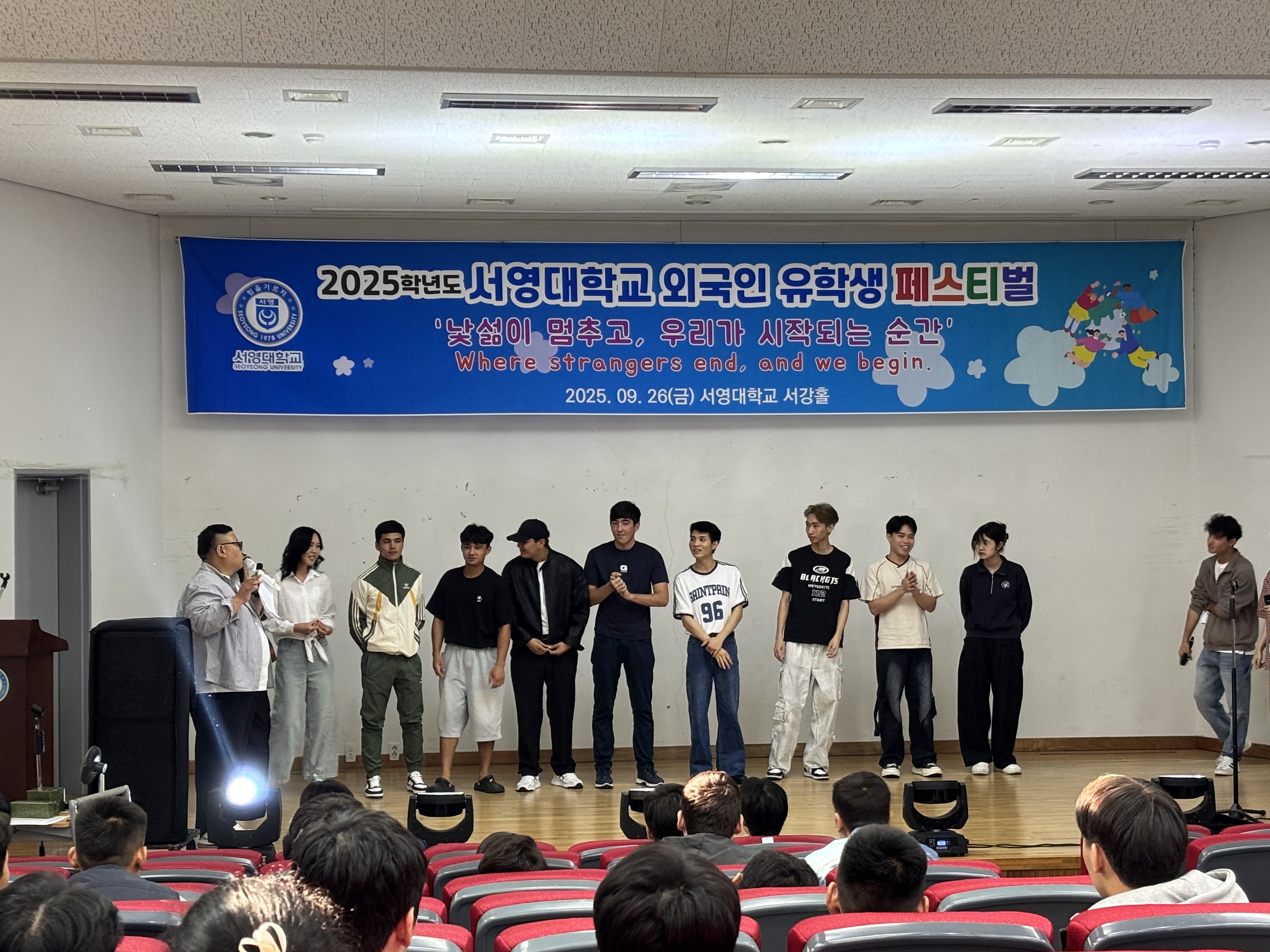 우리 서영대학교에서는 외국인 유학생들이 한국 문화를 보다 쉽게 이해하고, 적응하며 즐겁게 학업에 전념할 수 있도록 다양한 교류의 장을 마련하고 있습니다. 2025년 9월 26일 진행된 외국인 유학생 페스티벌에서 우리 미래자동차과의 우즈베키스탄과 베트남 유학생들이 장기자랑 무대에 참가하여 수상하는 기쁨을 나누었습니다. 행사에 참여한 학생들은 한국의 다양한 축하공연을 함께 보며 즐거운 시간을 보냈습니다. 앞으로도 유학생들이 학업과 학교생활에 원활히 적응하고, 서로 존중하며 함께 성장할 수 있도록 적극적으로 지원하겠습니다.