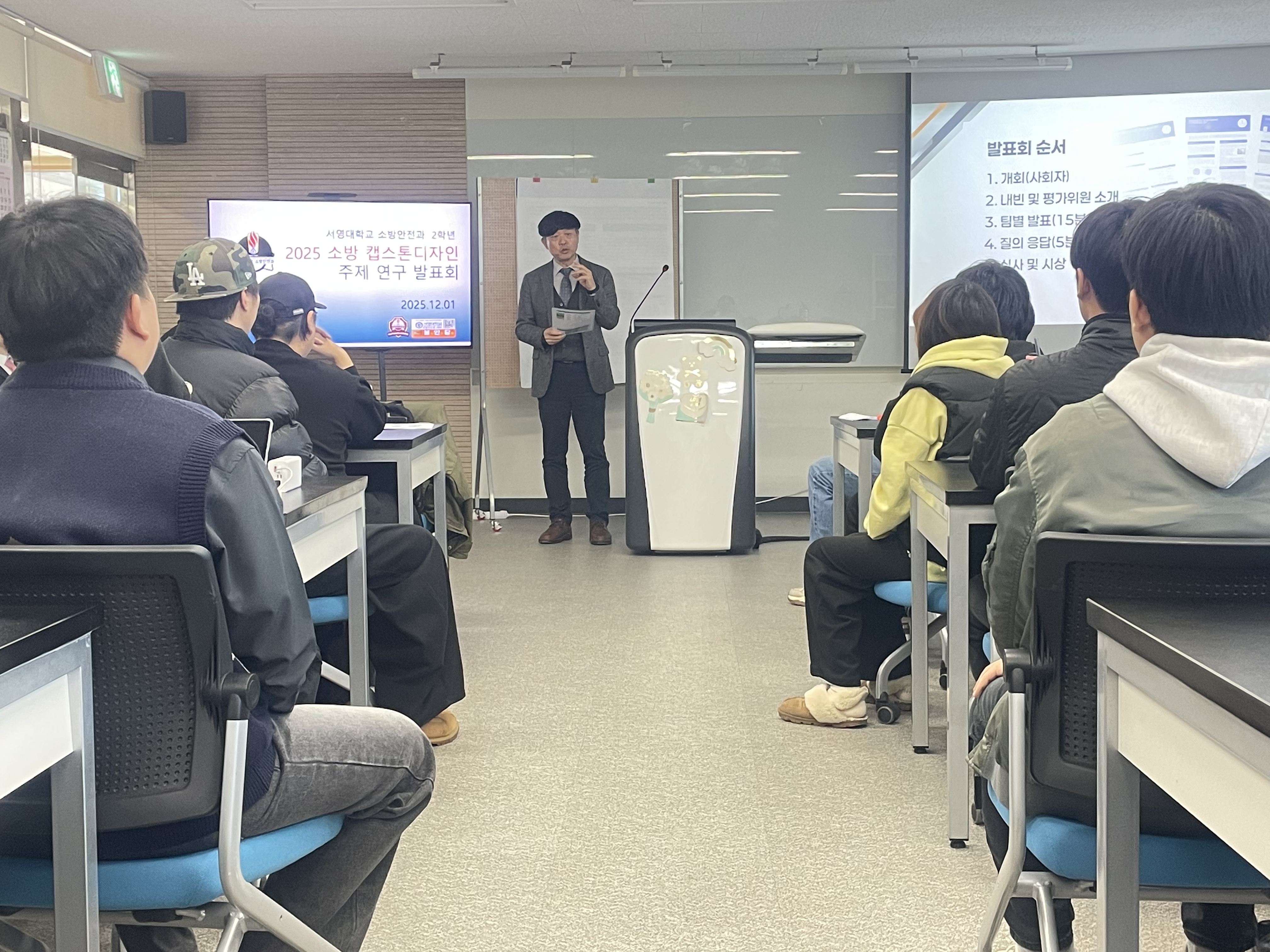 26년 졸업 예정 주간반 미래 소방인 들의 연구주제 발표회를 멋지게 보여주었습니다 .