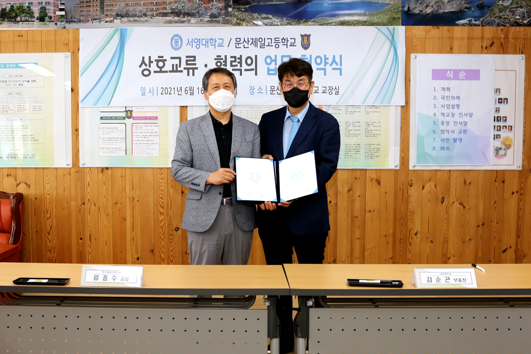 O 서영대학교 ( 총장 김정수) 는 문산제일고등학교 (교장 류종수)와 김순곤 서영대학교 부총장 , 류종수 문산제일고등학교 교장외 17명의 관계자가 참석하여 양기관 간 우수인재육성을 위한 상호협력 업무협약 체결을 진행 하였다.