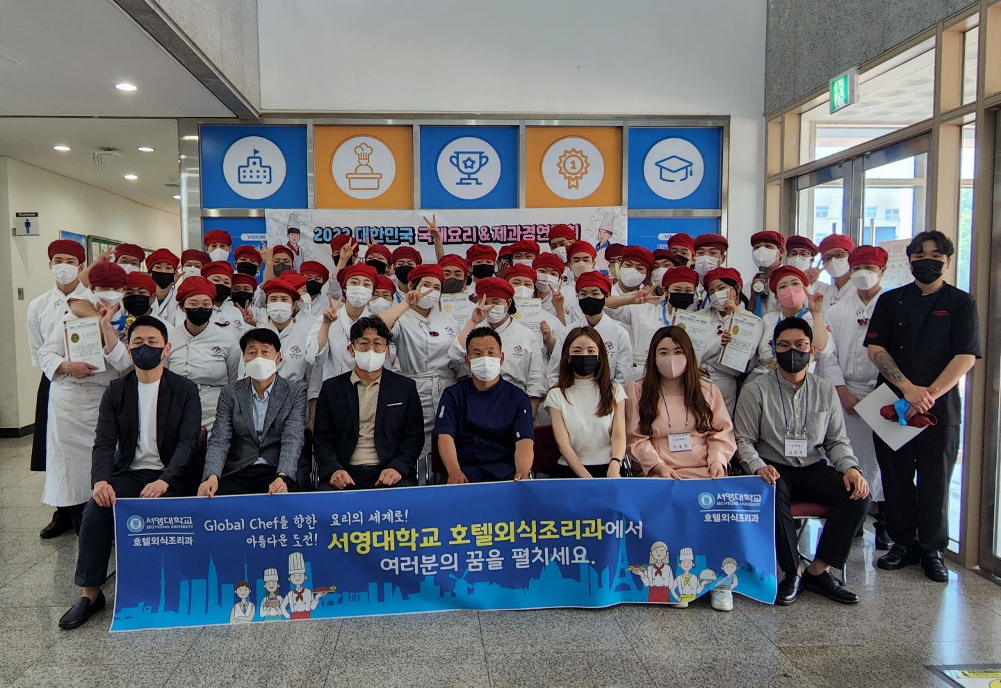 이번대회에 참가하여 수상을 한 학생들의 명단은 다음과 같다. 1. 대상(서울특별시장상): 김O훈, 조O성, 이O빈, 김O겸 2. 최우수상(수산업협동조합중앙회 회장상): 류O은, 이O진, 김O훈, 류O호, 허O 3. 금상: 김O훈, 조O성, 이O빈, 김O겸, 최O연, 이O준, 박O규, 이O진, 이O교, 유O영, 박O 정, 방O혁, 백O흠, 김O화, 권O주, 이O현, 김O윤, 김O영, 류O은, 이O진, 김O훈, 류O호, 허O, 엄O상, 여O름, 최O웅, 전O진 5. 은상: 윤O진, 정O우, 이O상, 김O을, 화O빈, 이O도, 송O서, 안O연, 임O정, 김O남, 정O 성, 최O석, 김O경, 박O영, 이O수, 박O연, 윤O준, 한O연, 정O헌, 강O린, 임O서, 전O현 6. 동상: 심O민, 서O식, 남O민, 이O올, 이O진 O. 우리대학 호텔외식조리과는 매년 국제대회에 참여하여 큰 성과를 거두고 있는데 장차 국내 조리산업에 큰 재목이 될 인재들로 성장할 학생들을 교육 배출하고 있다. 이번 대회를 위해 두 달 여간 학생들을 지도해온 김장호 교수는 "학생들이 열심히 공부하고 노력한 만큼 좋은 성과로 이어져 기쁘다"고 소감을 밝혔다.