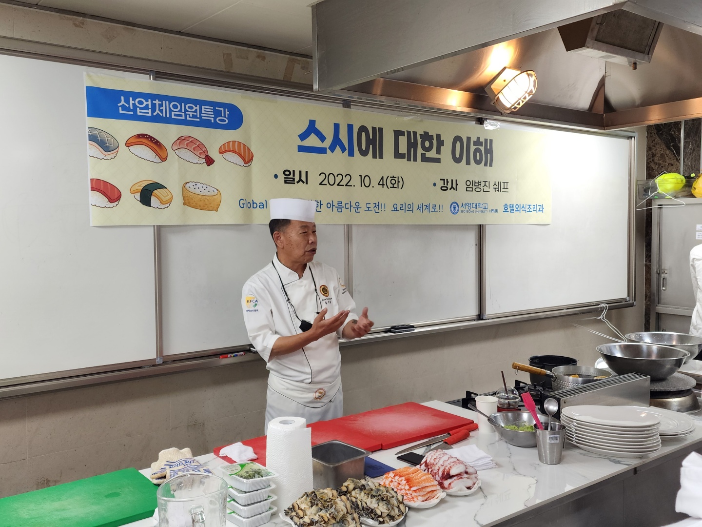 강사 임병진 쉐프님이 산업체임원특강으로 "스시에 대한 이해 특강" 을 진행하셨습니다.