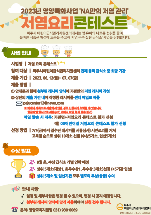 2023년 영양특화사업 "NA만의 저염관리" 저염요리콘테스트를 진행하였습니다.