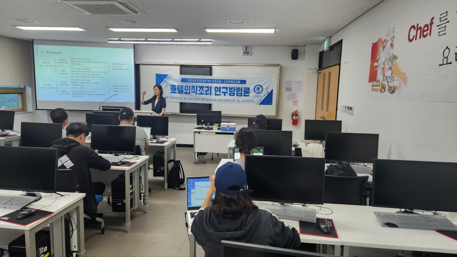 -주제 : 연구방법론 및 기초 통계 특강 -대상 : 서영대학교 호텔외식조리학과 4학년 -강사 : 김현주 박사님(알디엔씨 대표) -일시 : 2024년 6월13(월)~ 6월17일(금)