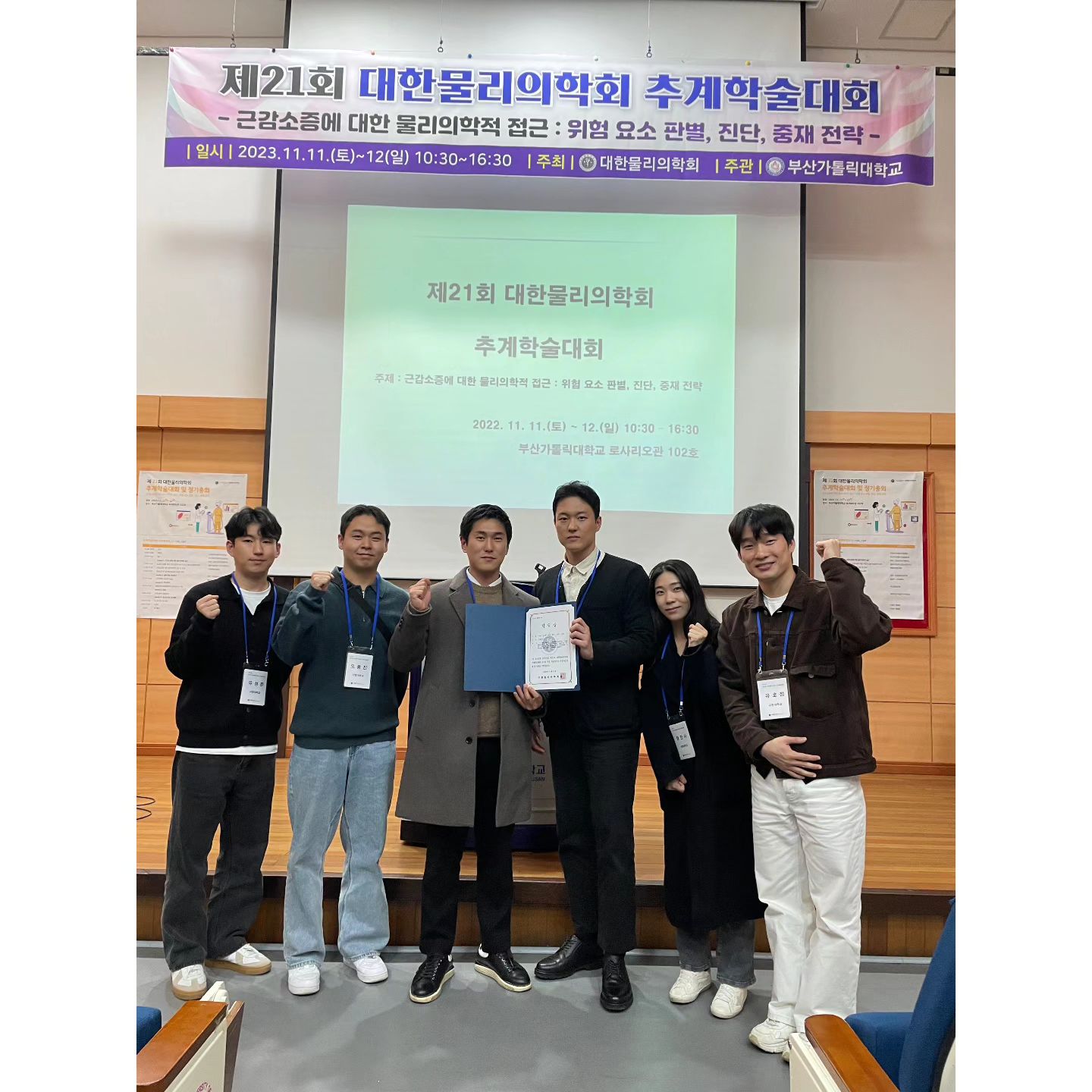 저희 물리치료과 3학년 학생들이 11일 부산가톨릭대학교에서 열린 제 21회 대한물리의학회 학술대회에 참여하여 학술상을 수상하였습니다!