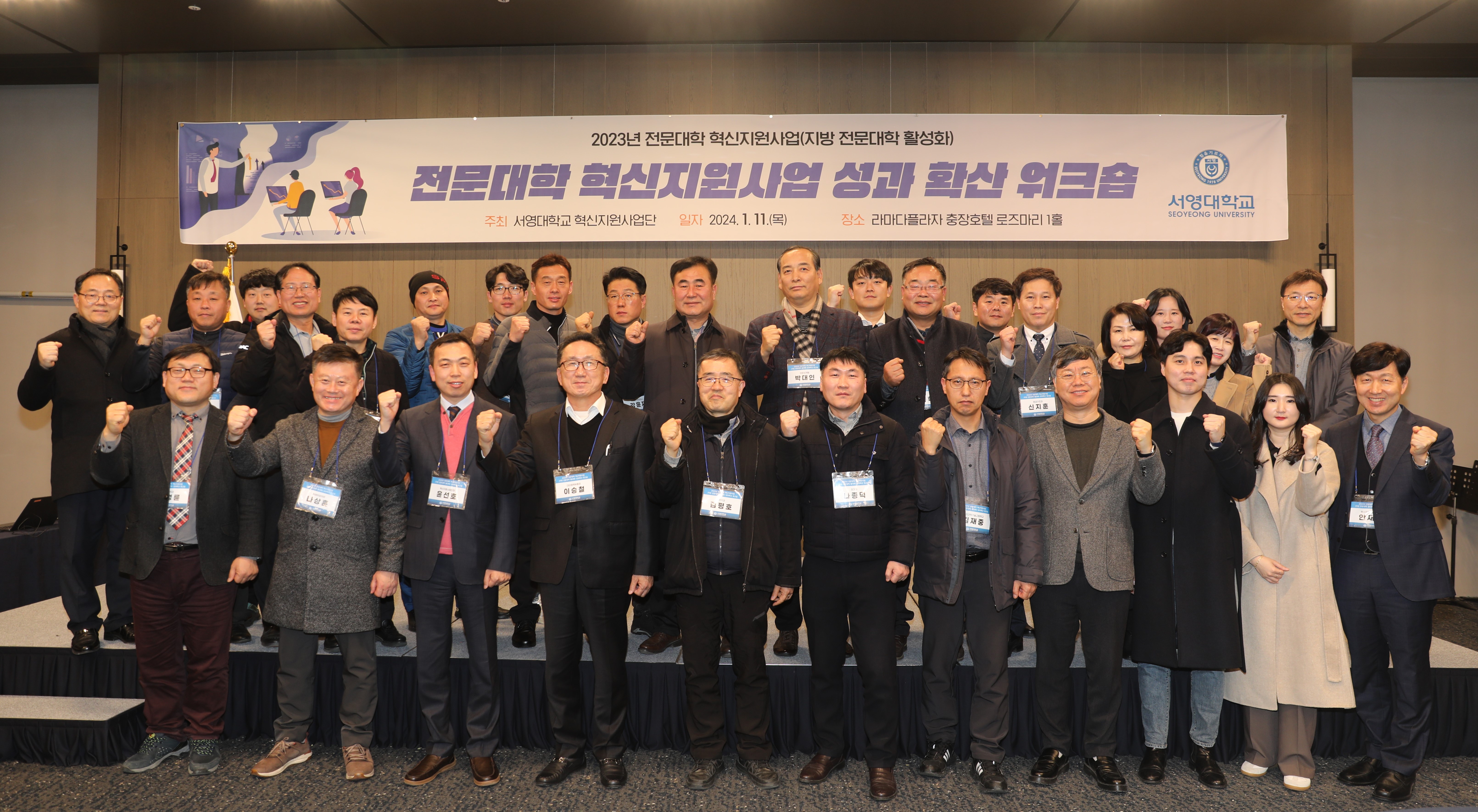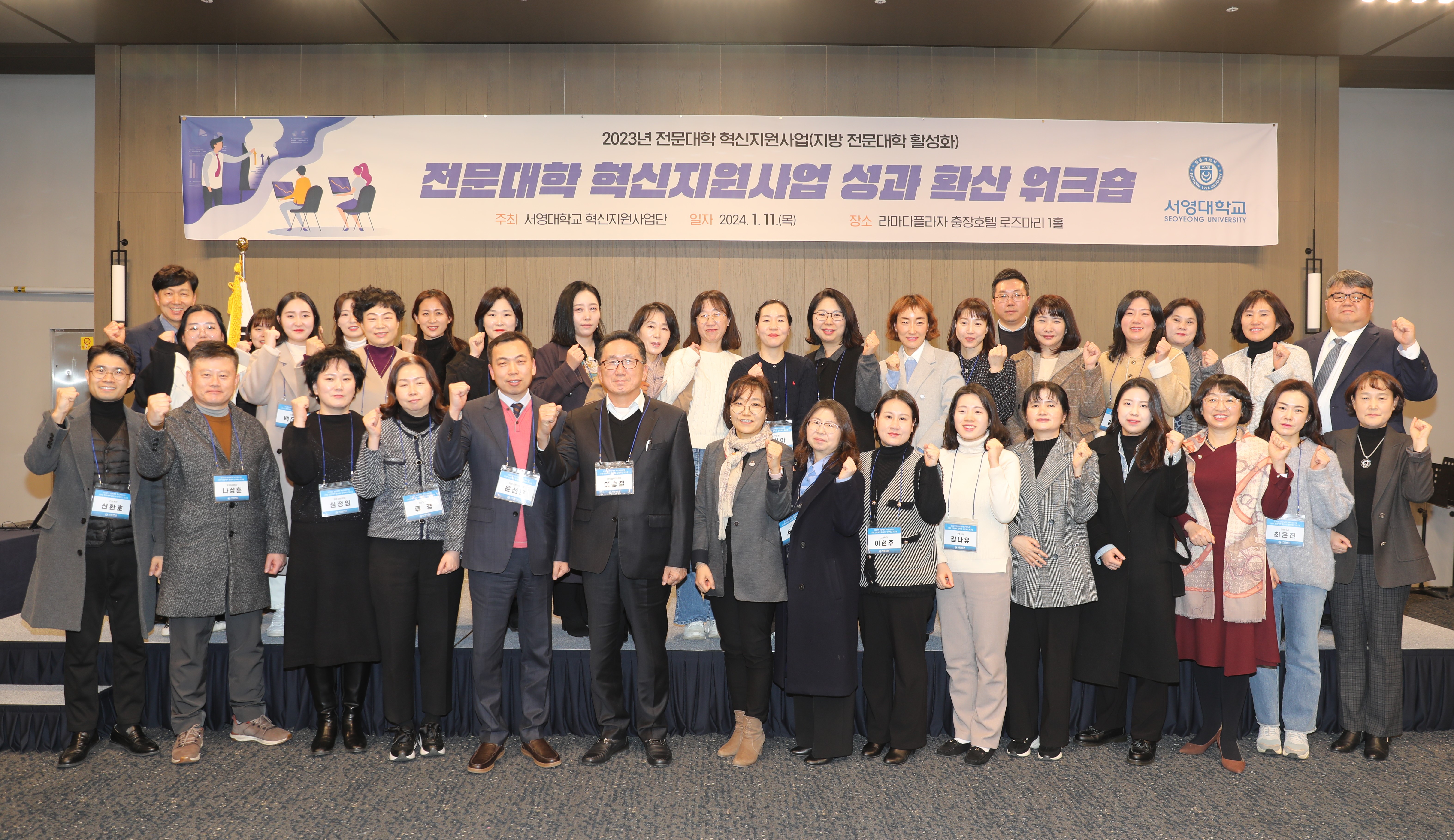 ○ 우리대학이 11일 라마다프라자 충장호텔에서 ㈜준성개발, 광산소방서, 하나모터스, 미래로21병원 등 41개 협약업체 관계자들과 관련학과 및 교직원 등이 참여한 가운데 지방전문대학활성화사업 성과 확산 워크숍을 열었다.