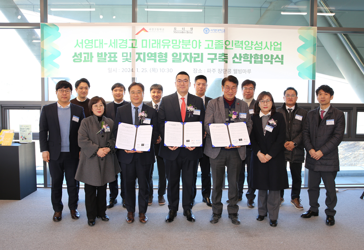 O. 우리대학(총장 김정수)은 1월25일(금) 주식회사 모터원(대표이사 손영호), 세경고등학교(교장 장계홍)와 「미래유망분야 고졸인력 양성사업」 관련 지역형 일자리 구축 및 산학협력을 통한 지역 우수 고졸인력 양성을 위한 업무협약을 체결하였다.