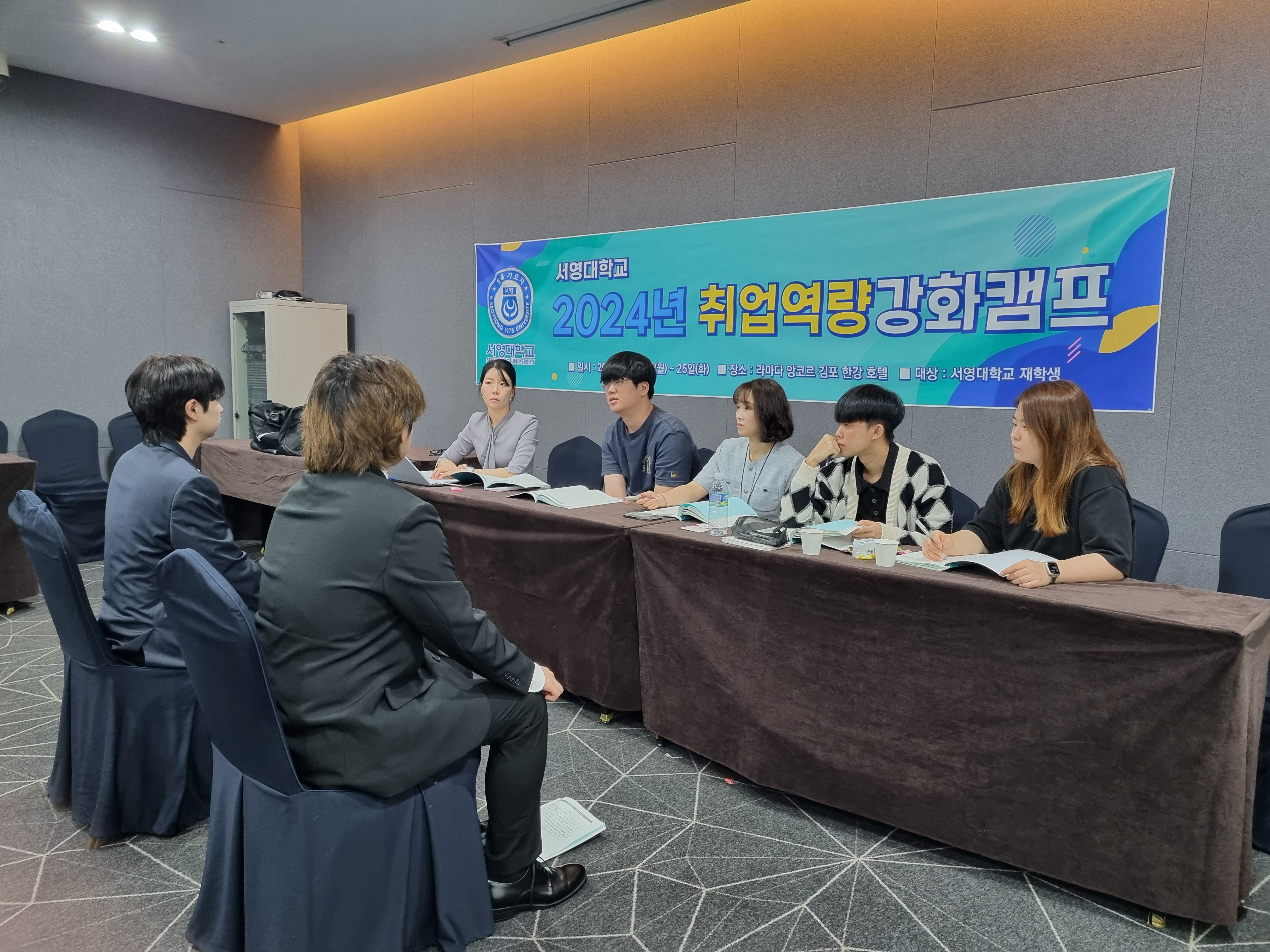 ○ 우리대학(총장 김정수)은 2024년 6월 24일(월) ~ 25일(화) 1박2일 일정으로 라마다앙코르 바이윈덤 김포한강호텔에서 9개 학과 34명의 재학생들과 함께 취업역량강화캠프를 실시하였다.