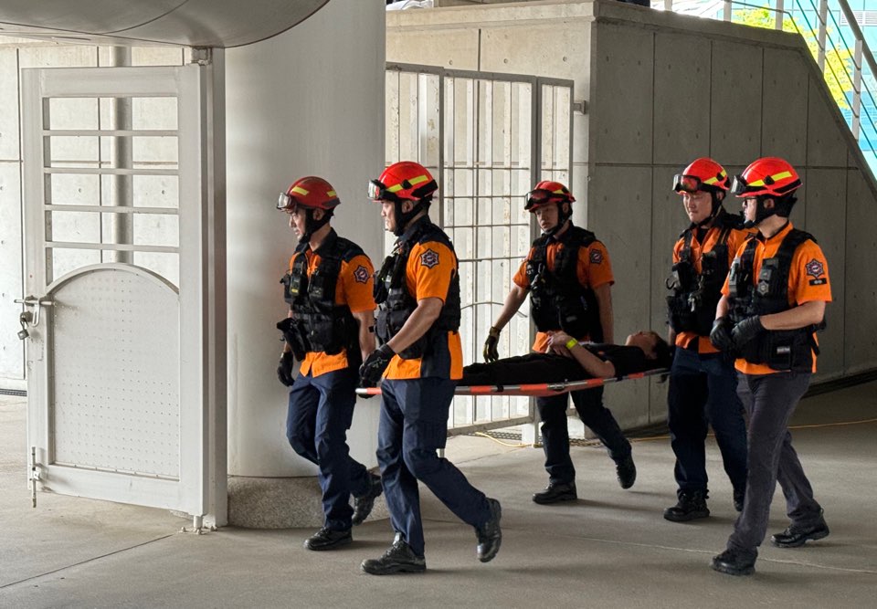 ○ 우리대학(총장 김정수) 응급구조과(학과장 신요한)는 6월 24일(월) 경기도 북부소방재난본부와 일산소방서가 주관한 ‘2024 다수사상자 구급 대응훈련’에 참가했다. 훈련에는 응급구조과 재학생 25명이 참여하였다.