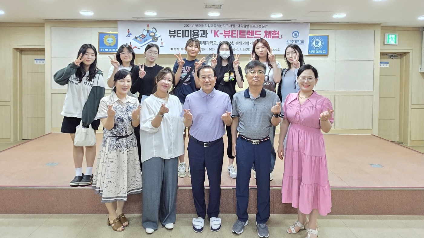 ○ 서영대학교는 최근 '2024년 빛고을 직업교육 혁신지구 사업'의 일환으로 송원여자상업고등학교 뷰티아트 동아리 학생 7명을 대상으로 'K-뷰티트렌드체험' 대학탐방프로그램을 실시했다고 25일 밝혔다.